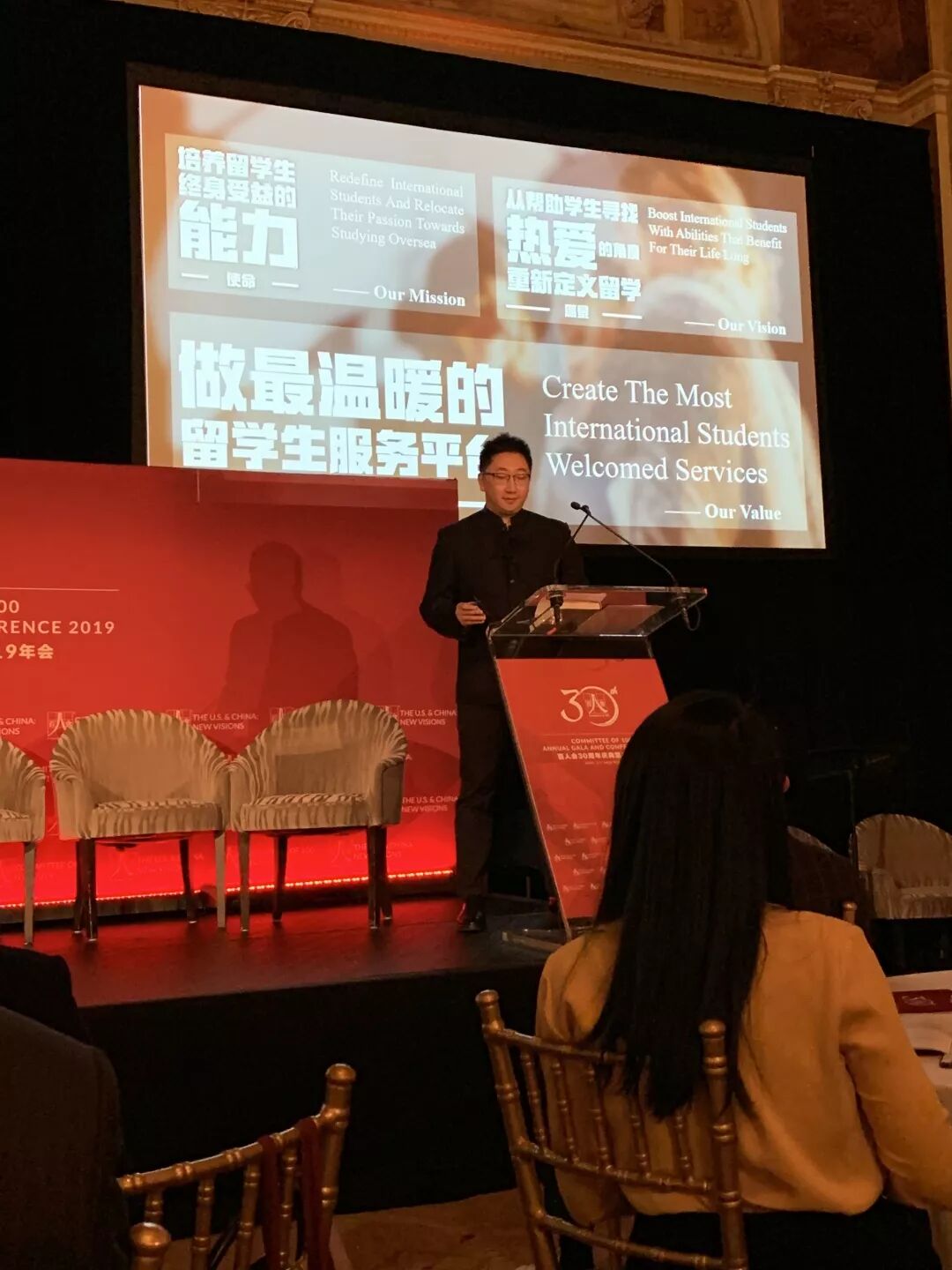 北美留学生网创始人王兆楠先生也出席了此次庆典包括晚宴、全天年会以及Town Hall论坛。晚会上,王兆楠先生被邀请上台与在场各位分享北美留学生网一路走来的初衷与历程。